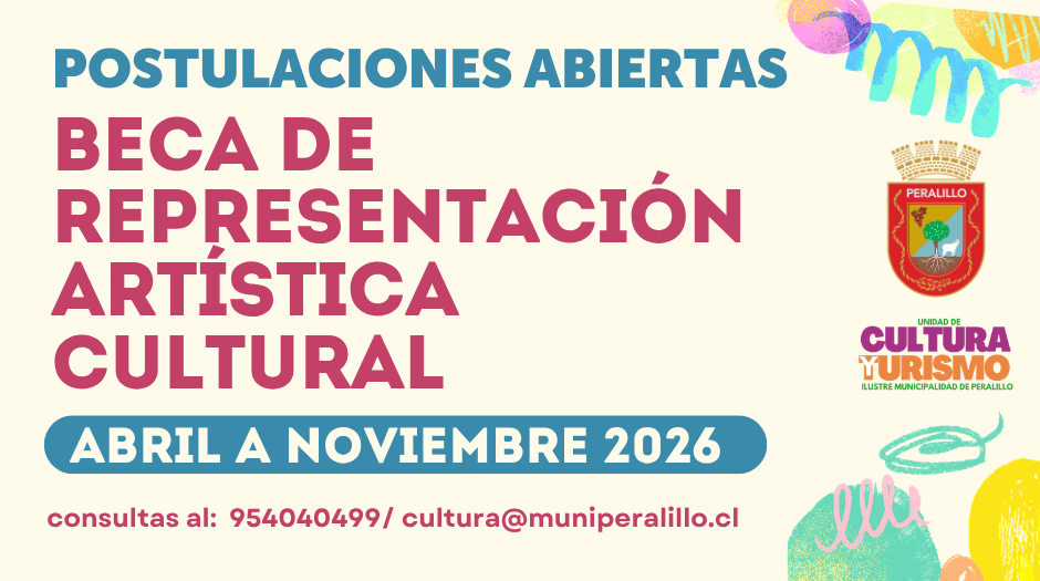 Desde el miércoles 01 de abril se abren las postulaciones a la Beca de Representación Artística Cultural año 2026 hasta el mes de noviembre.